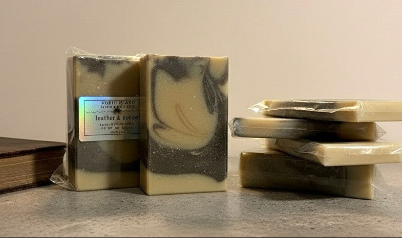 This bar has sophisticated scent of suede, jasmine and sage with sandalwood and patchouli.