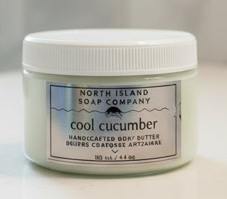 This emulsified silky light green body butter smells like just like fresh cool cucumber.
